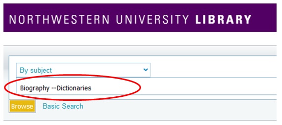 Some good searches in NUsearch for Biography reference works include: